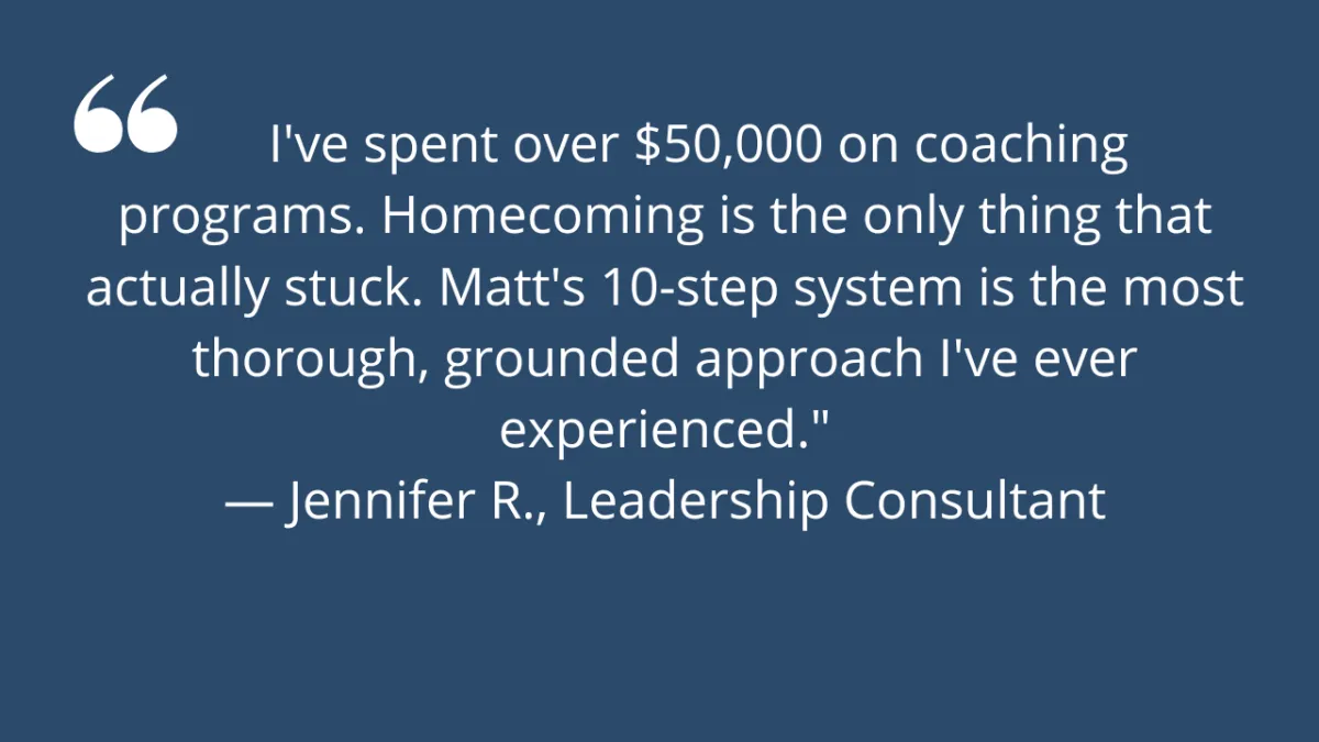 If you're a coach, leader, or business owner who's tired of surface-level solutions that don't create lasting change, Homecoming offers a different path, one that finally addresses the root