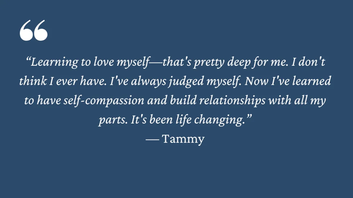 Homecoming uses parts work to make contact with the protective mechanisms that keep you emotionally numb, hard on yourself, or stuck in unhealthy relationships. We don't fight these parts; we understand them, give them compassion, and heal the childhood wounds that created them in the first place.